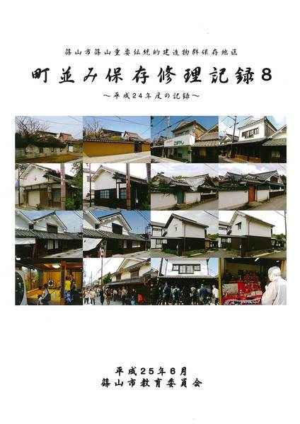 なお、これら事業の年度別概要については、「篠山市篠山重要伝統的建造物群保存地区 町並み保存修理記録1」(平成17年度)、「同2」(平成18年度)、「同3」(平成19年度)、「同4」(平成20年度)、「同5」(平成21年度)、「同6」(平成22年度)、「同7」(平成23年度)、「同8」(平成24年度)の報告書にまとめています。