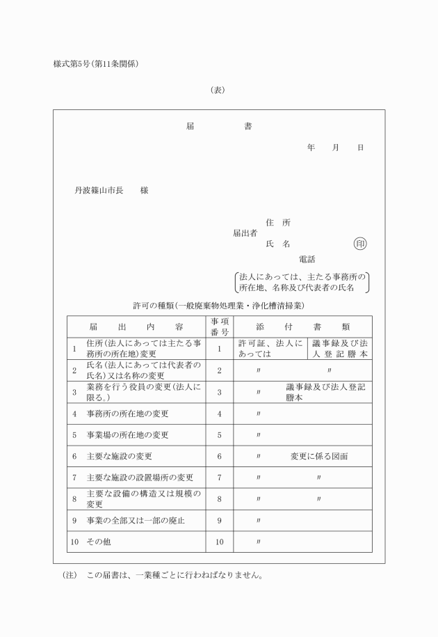 (一般廃棄物処理業許可申請事項の変更等の届出)