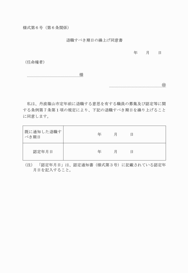 (1) 退職すべき期日を繰り上げるとき 退職すべき期日の繰上げ同意書(様式第6号)